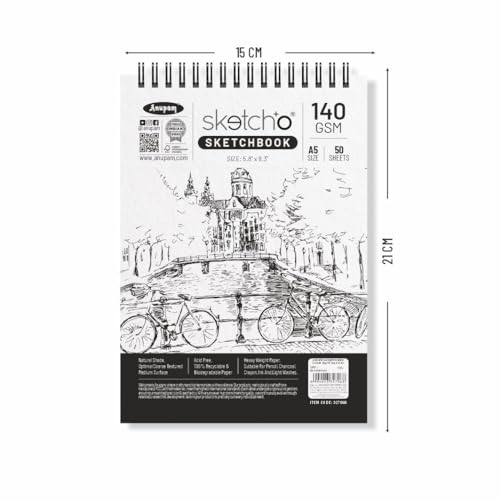 Anupam is an in-house manufacturing brand which supplies stationery products and art materials in India. It was incepted in the year 1973Anupam stationery prides in providing only the highest quality. Whether its a reflection of our happiness our grief our joy our wonder or our longing art is the legacy we will leave behind to tell future generations who we were at this place in time.Although Anupam started its journey with papers it now has an array of art products starting from papers and canvases to easels and takes pride in supplying quality products at an affordable rate.We want to ensure you have a great experience with our products because we truly care about our customers. we're proud of so purchase our products with the confidence. Ideal Use: Sketching drawing doodling graphite painting charcoal painting watercolors acrylic paint ink and pencil thanks to its premium surface. Best sketch book for sketching Sizes available - A5 A4 - Portrait Square (20cm x 20cm) A6 and A3 - Portrait High-quality drawing paper may be used with a variety of media including The ideal paper for sketching drawing manga cartoons still life stippling and experimenting with new techniques Strong smooth and easily absorbing colors and lines which reduces blotching smudges and accidents. Coloring book sketchbook and blank-page book appropriate for all ages Thickness: 140 GSM Cartridge Paper Type of Binding: Hardbound Paper Colour: Natural Shade Cartridge Paper Type of Paper: Optimal Coarse PH Neutral and Acid-Free Paper Number of Pages: 128 in all the sizes