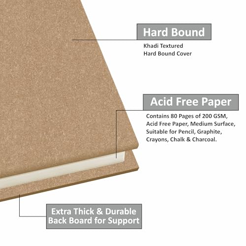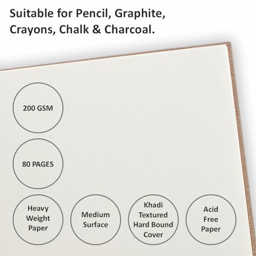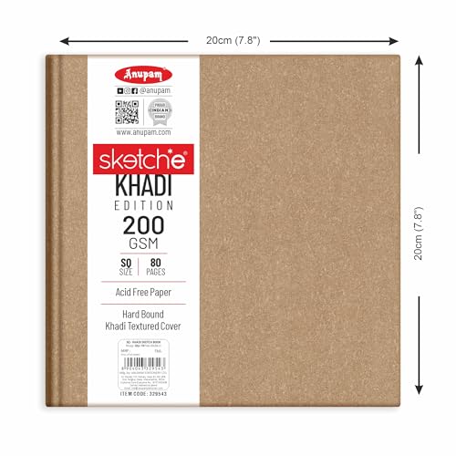 Anupam is an in-house manufacturing brand which supplies stationery products and art materials in India. It was incepted in the year 1973Anupam stationery prides in providing only the highest quality. Whether its a reflection of our happiness our grief our joy our wonder or our longing art is the legacy we will leave behind to tell future generations who we were at this place in time.Although Anupam started its journey with papers it now has an array of art products starting from papers and canvases to easels and takes pride in supplying quality products at an affordable rate.We want to ensure you have a great experience with our products because we truly care about our customers. we're proud of so purchase our products with the confidence. Ideal Use: Sketching drawing doodling graphite painting charcoal painting watercolors acrylic paint ink and pencil thanks to its premium surface. Best sketch book for sketching High-quality drawing paper may be used with a variety of media including The ideal paper for sketching drawing manga cartoons still life stippling and experimenting with new techniques Coloring book sketchbook and blank-page book appropriate for all ages Thickness: 200 GSM Cartridge Paper Type of Binding: Hardbound Paper Colour: Natural Shade Cartridge Paper Type of Paper: Optimal Coarse PH Neutral and Acid-Free Paper Number of Pages: 128 in all the sizes Khadi Cover The product is made in India Colours available: Khaki and Blue Sizes available - A5 A4 - Landscape and Square (20cm x 20cm)
