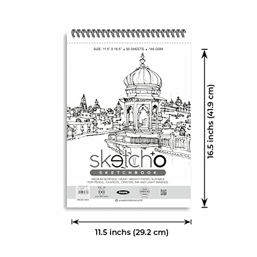 Anupam is an in-house manufacturing brand which supplies stationery products and art materials in India. It was incepted in the year 1973Anupam stationery prides in providing only the highest quality. Whether its a reflection of our happiness our grief our joy our wonder or our longing art is the legacy we will leave behind to tell future generations who we were at this place in time.Although Anupam started its journey with papers it now has an array of art products starting from papers and canvases to easels and takes pride in supplying quality products at an affordable rate.We want to ensure you have a great experience with our products because we truly care about our customers. we're proud of so purchase our products with the confidence. Ideal Use: Sketching drawing doodling graphite painting charcoal painting watercolors acrylic paint ink and pencil thanks to its premium surface. Best sketch book for sketching Sizes available - A5 A4 - Portrait Square (20cm x 20cm) A6 and A3 - Portrait High-quality drawing paper may be used with a variety of media including The ideal paper for sketching drawing manga cartoons still life stippling and experimenting with new techniques Strong smooth and easily absorbing colors and lines which reduces blotching smudges and accidents. Coloring book sketchbook and blank-page book appropriate for all ages Thickness: 140 GSM Cartridge Paper Type of Binding: Hardbound Paper Colour: Natural Shade Cartridge Paper Type of Paper: Optimal Coarse PH Neutral and Acid-Free Paper Number of Pages: 128 in all the sizes