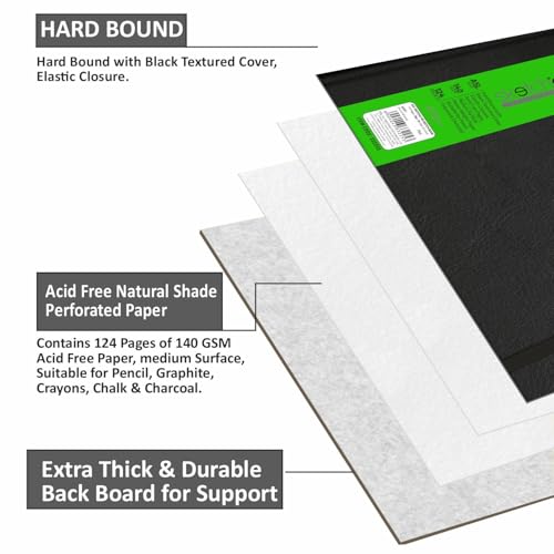 Anupam is an in-house manufacturing brand which supplies stationery products and art materials in India. It was incepted in the year 1973Anupam stationery prides in providing only the highest quality. Whether its a reflection of our happiness our grief our joy our wonder or our longing art is the legacy we will leave behind to tell future generations who we were at this place in time.Although Anupam started its journey with papers it now has an array of art products starting from papers and canvases to easels and takes pride in supplying quality products at an affordable rate.We want to ensure you have a great experience with our products because we truly care about our customers. we're proud of so purchase our products with the confidence. Ideal Use: Sketching drawing doodling graphite painting charcoal painting watercolors acrylic paint ink and pencil thanks to its premium surface. Best sketch book for sketching Sizes available - A5 A4 - Portrait Square (20cm x 20cm) A6 and A3 - Portrait High-quality drawing paper may be used with a variety of media including The ideal paper for sketching drawing manga cartoons still life stippling and experimenting with new techniques Strong smooth and easily absorbing colors and lines which reduces blotching smudges and accidents. Coloring book sketchbook and blank-page book appropriate for all ages Thickness: 140 GSM Cartridge Paper Type of Binding: Hardbound Paper Colour: Natural Shade Cartridge Paper Type of Paper: Optimal Coarse PH Neutral and Acid-Free Paper Number of Pages: 128 in all the sizes