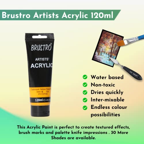 Brustro acrylics are affordable colours that can be used to paint on all conventional art surfaces such as paper cardboard canvasses etc. These soft bodied colours can be used straight from the tube as they wet easily on to the surface or they can be thinned with water. All the colours are inter-mixable giving endless colour possibilities. Best price quality ratio. These Acrylic Paints are perfect to create textured effects brush marks and palette knife impressions.