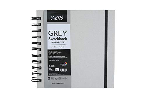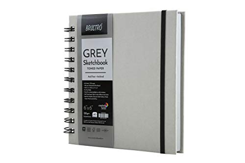 Brustro Toned Paper - Grey Sketchbook Wiro Bound Size 6" x 6" 120GSM (60 Sheets) 120 Pages
