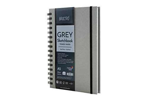 Brustro Toned Paper - Grey Sketchbook Wiro Bound Size A5 120GSM (60 Sheets) 120 Pages