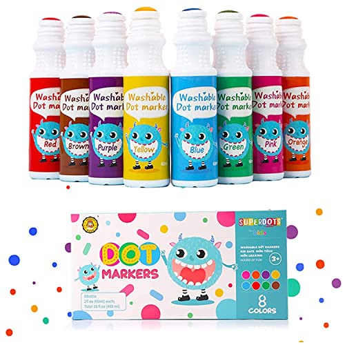 DearJoy Super Dot Markers Toddlers Kids 8 Colors Jumbo 20ml Water Based Non Toxic Fun Preschool Crafts Art Supplies Washable (Multicolor)