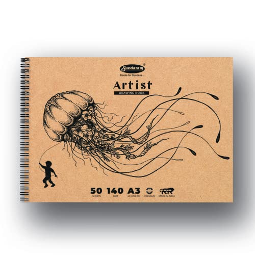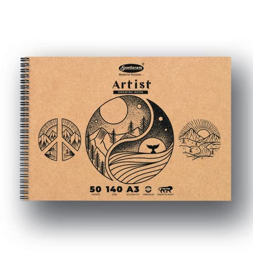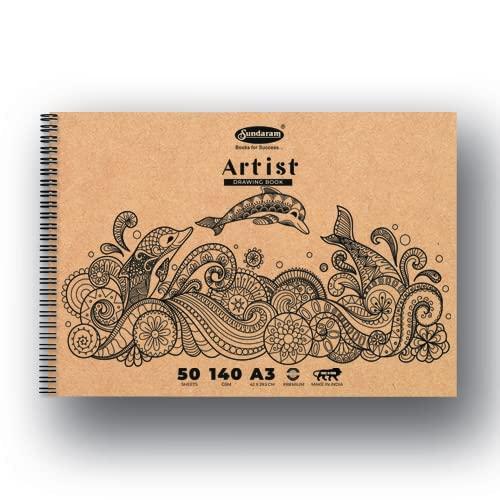 Artist Pad Art Sketchbook Media Pad Size: A3 Contains 50 Sheets(100Pages) Made from High Quality Natural Shade 140 GSM. Sketchbook is supported by extra thick back board for better support. Nicely bonded with suitable sized wiro. It can be used horizontal or vertical as needed. Sketchbook is ideal for Artists Engineers Architects and Students. The cover design of the book is subject to change it depends on stock availability.