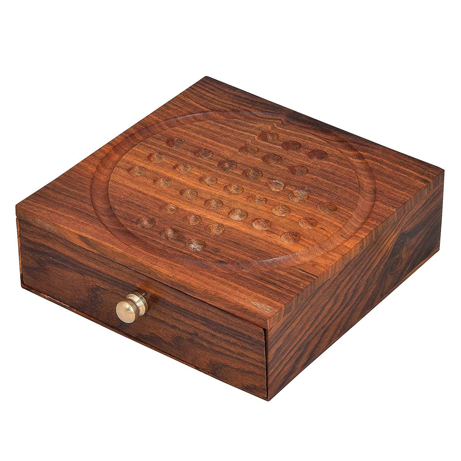 BIJNOR - METAL INLAY IN WOOD Solitaire Board Game Metal Balls Beads with Storage Drawer Wooden Solitaire Wooden Chinese Checker Game Metal bolls Brainvita Unique Game for Child and Adults