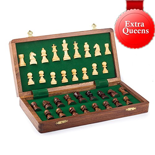 UNIQUE NEW FEATURE: 34 chess pieces and the quality green felt inside has designated space for these two queens too