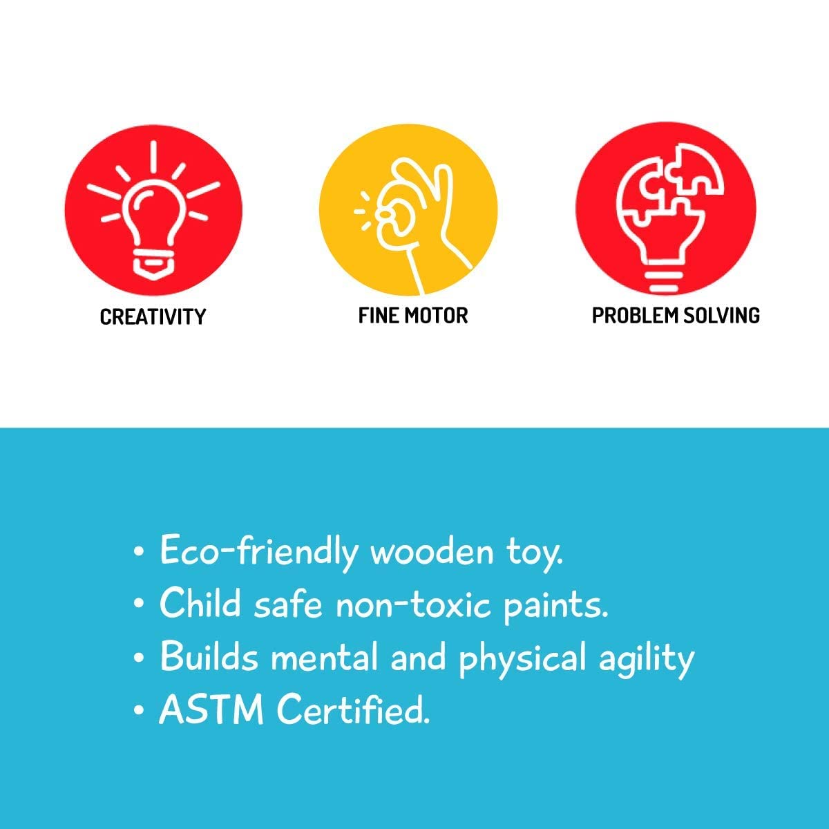 Material: 100 percent wooden crafted; non-toxic colors keeping child safety in mind; no plastic