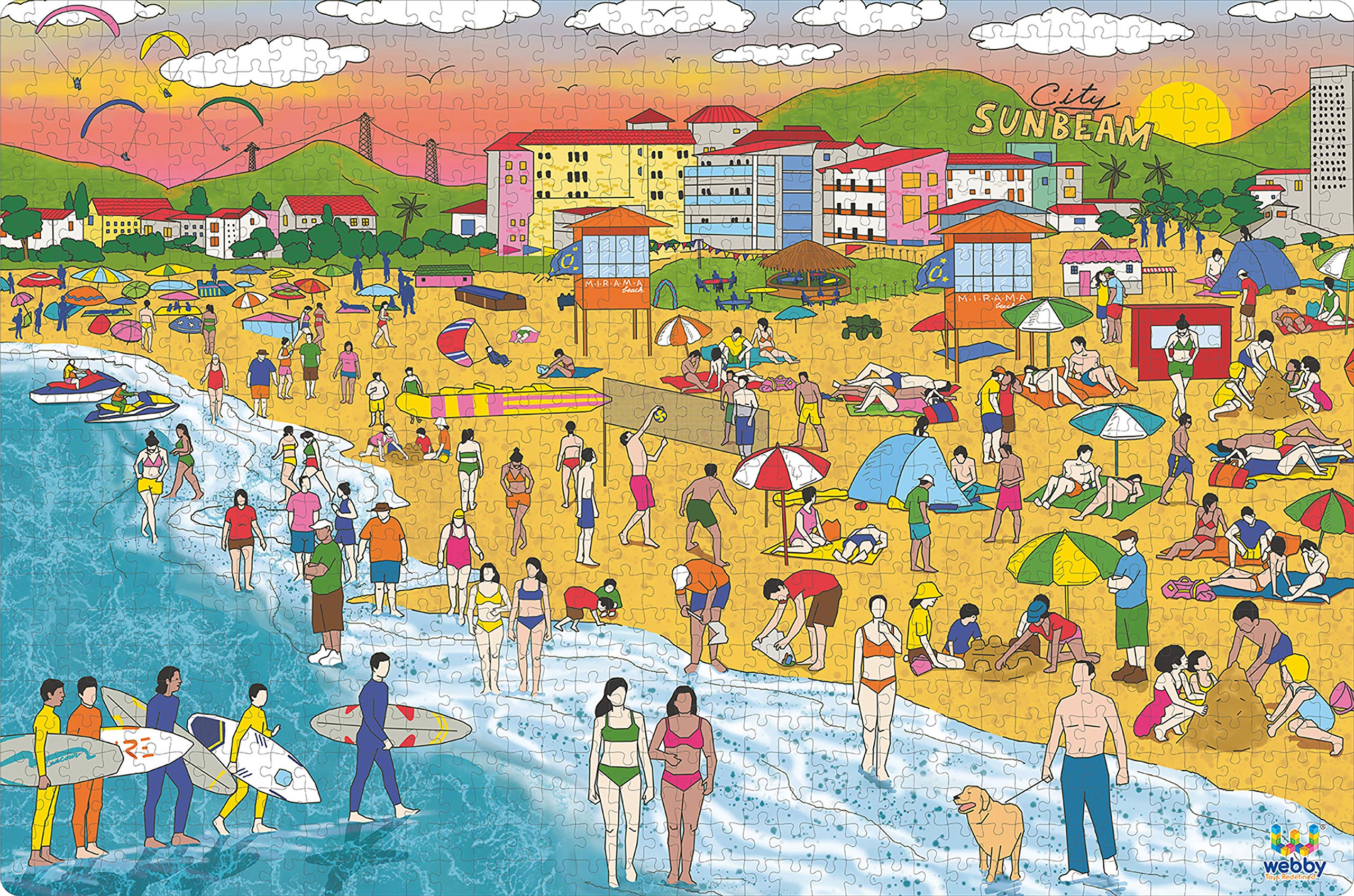 SKILL DEVELOPMENT: Increase the concentration & problem-solving skills with this premium Webby wood beach illustration jigsaw puzzle best for gifting to people of all ages