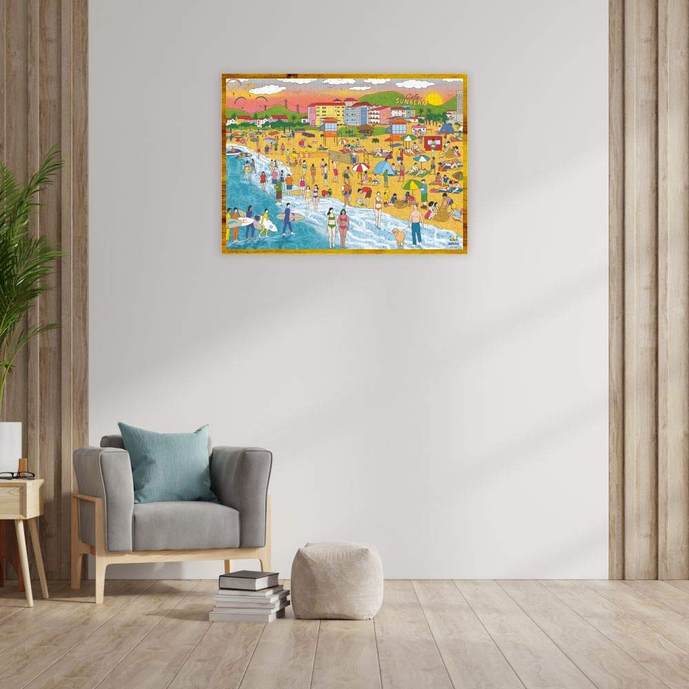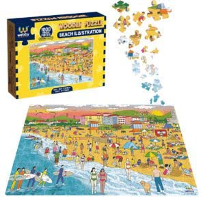 Webby Wooden 1000 Piece Jigsaw Puzzle - Beach Illustration - 1000 Pieces Puzzles for Adults and Family, 19" x 28.5"