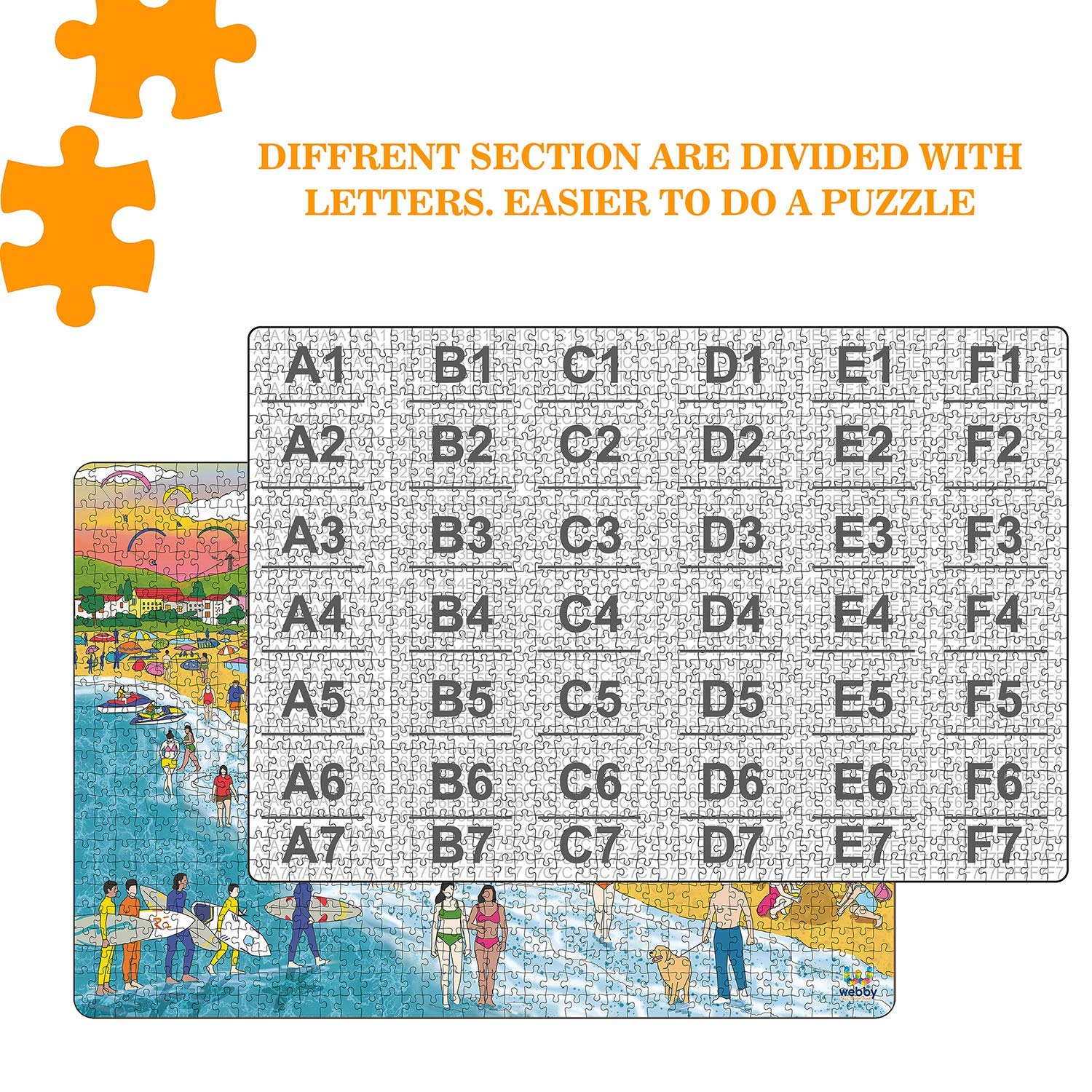 PERFECT LARGE SIZE: The size of the completed Webby Beach Illustration 1000 piece Wooden Jigsaw Puzzle is 19" x 28.5" which is perfect to be played on the table or floor with family or friends