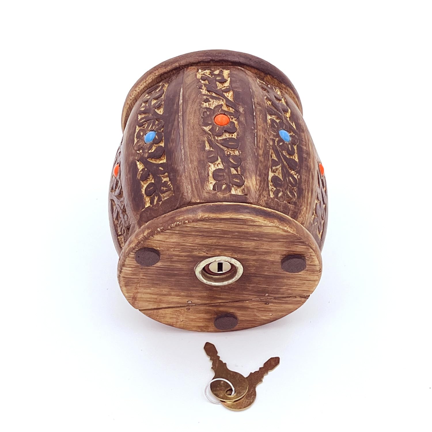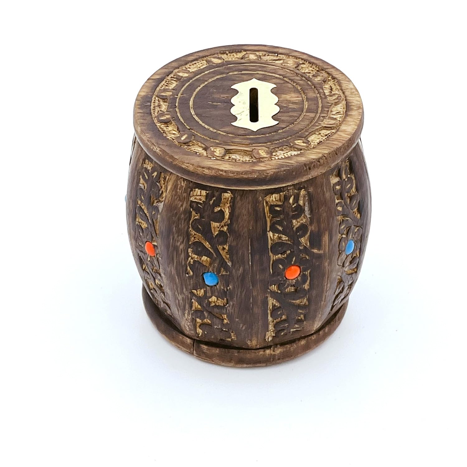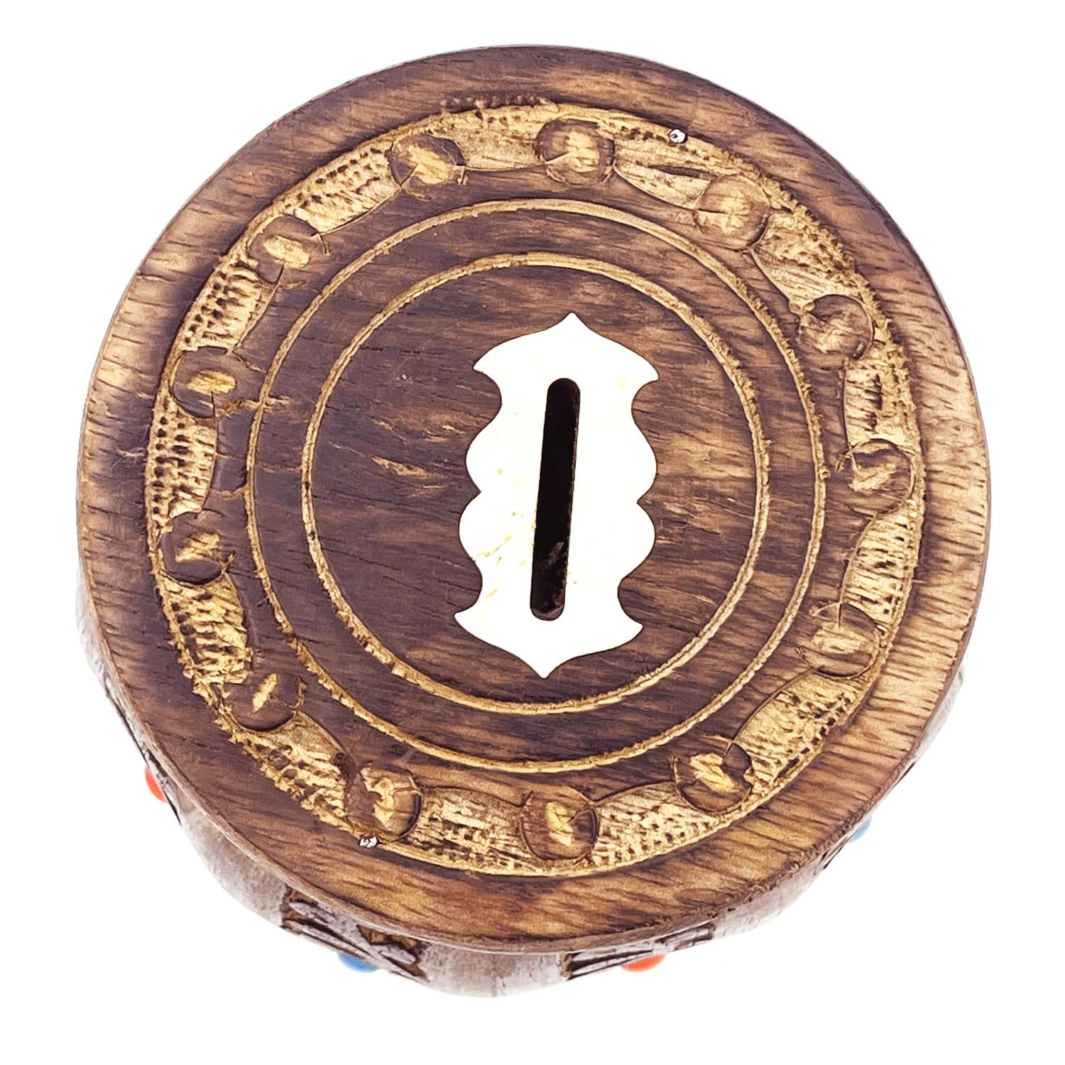 BIJNOR - METAL INLAY IN WOOD Wooden Piggy Bank Round Shape Carving Piggy Bank for Boys Girls and Adults Adult Piggy Bank Wooden Coin Bank Coin Box Money Bank for Coins and Money for Kids Money Box