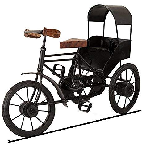 SAHARANPUR HANDICRAFTS Wooden Black Wrought Iron Cycle Rickshaw Shopice Toy for Kids and Home Decor