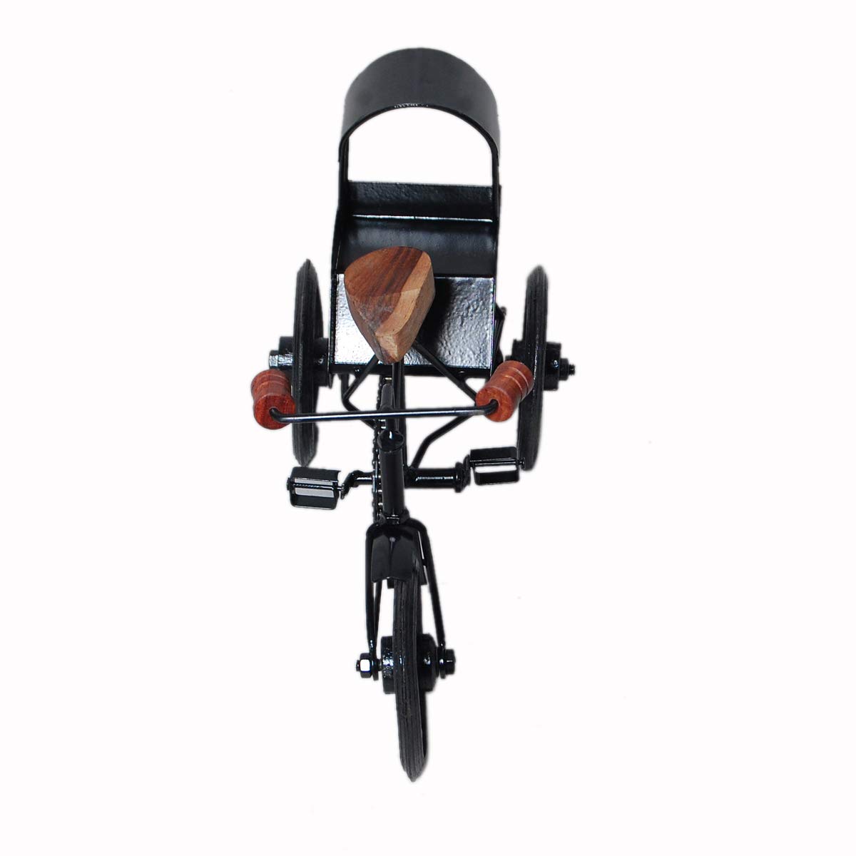 SAHARANPUR HANDICRAFTS Wooden Black Wrought Iron Cycle Rickshaw Shopice Toy for Kids and Home Decor