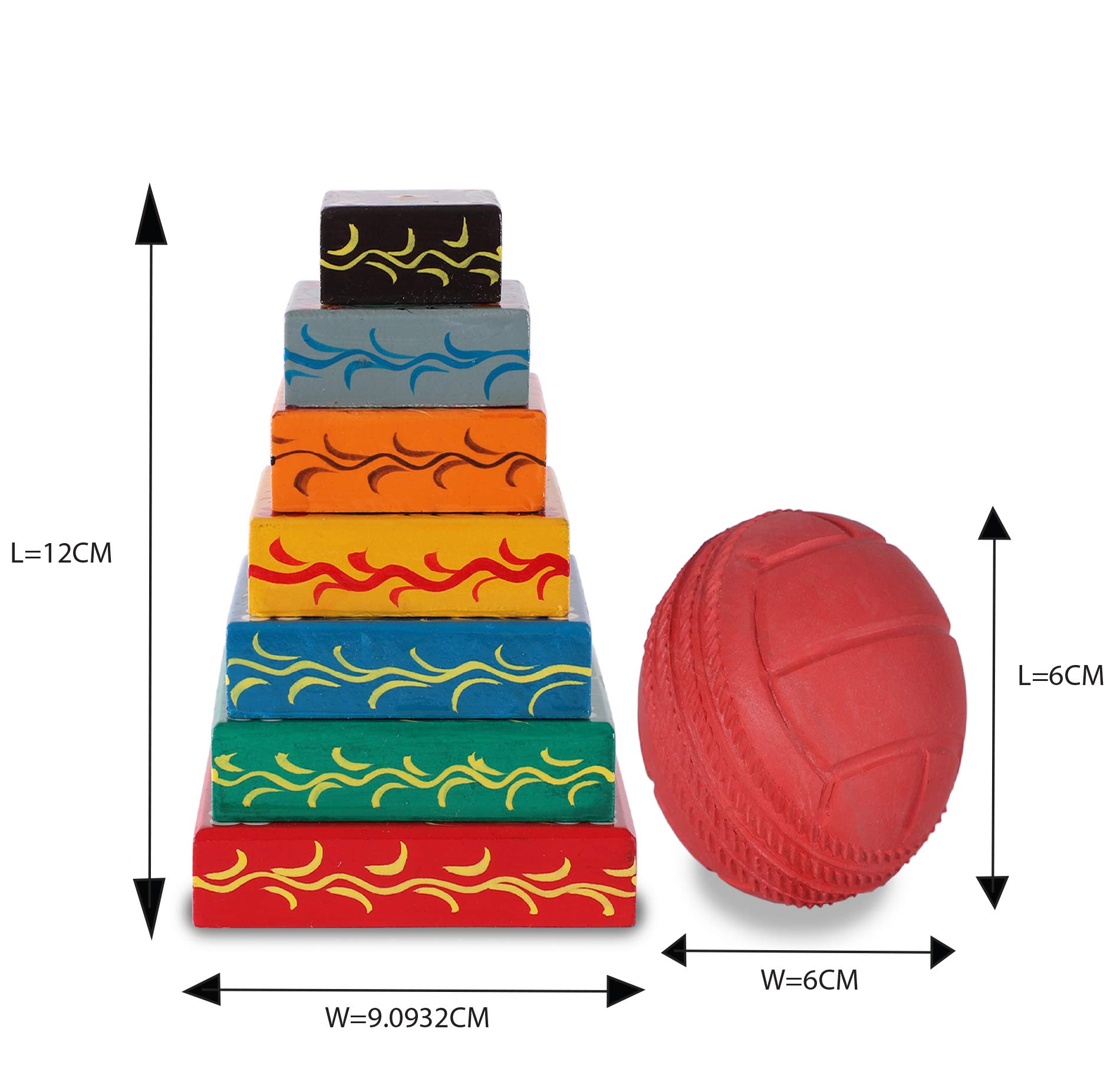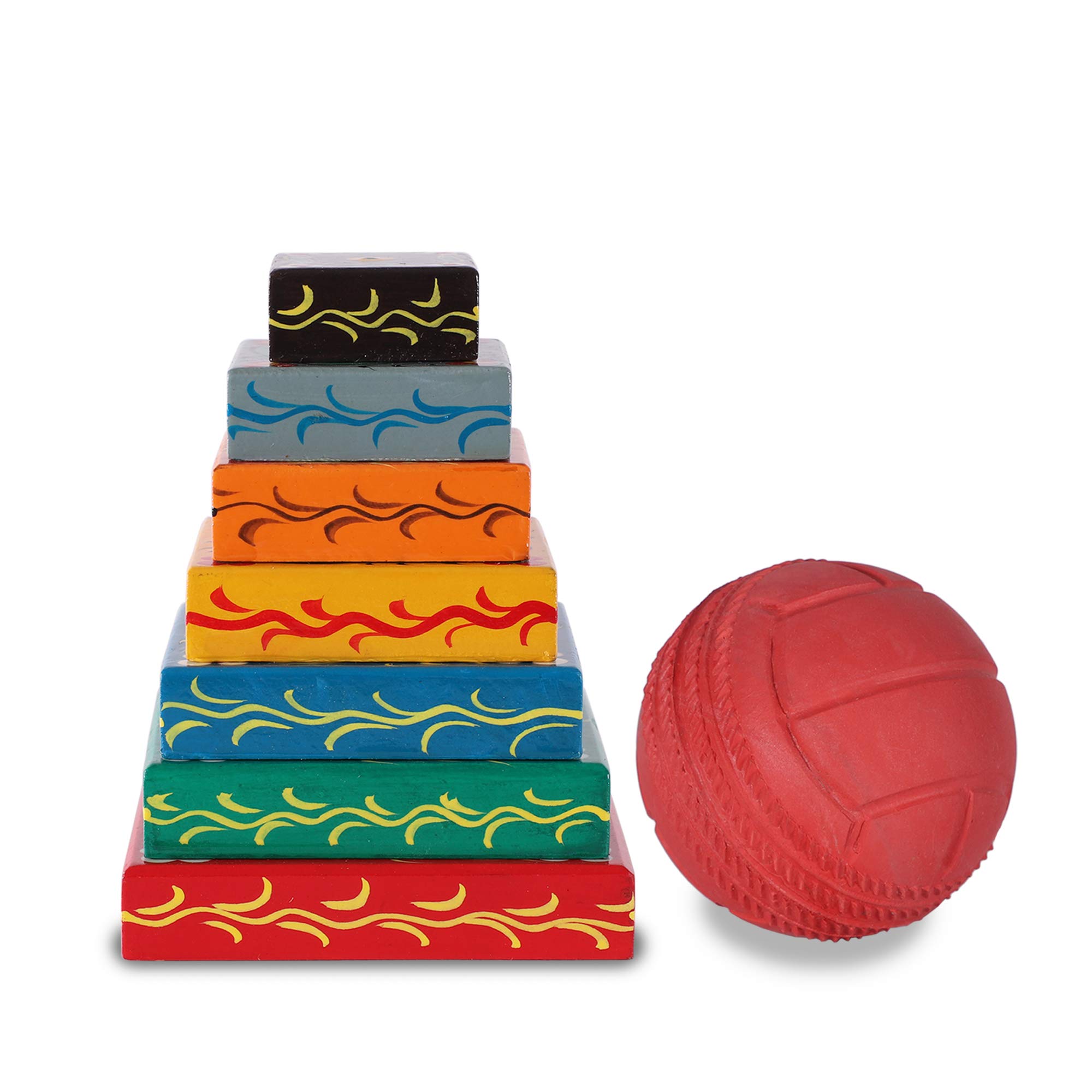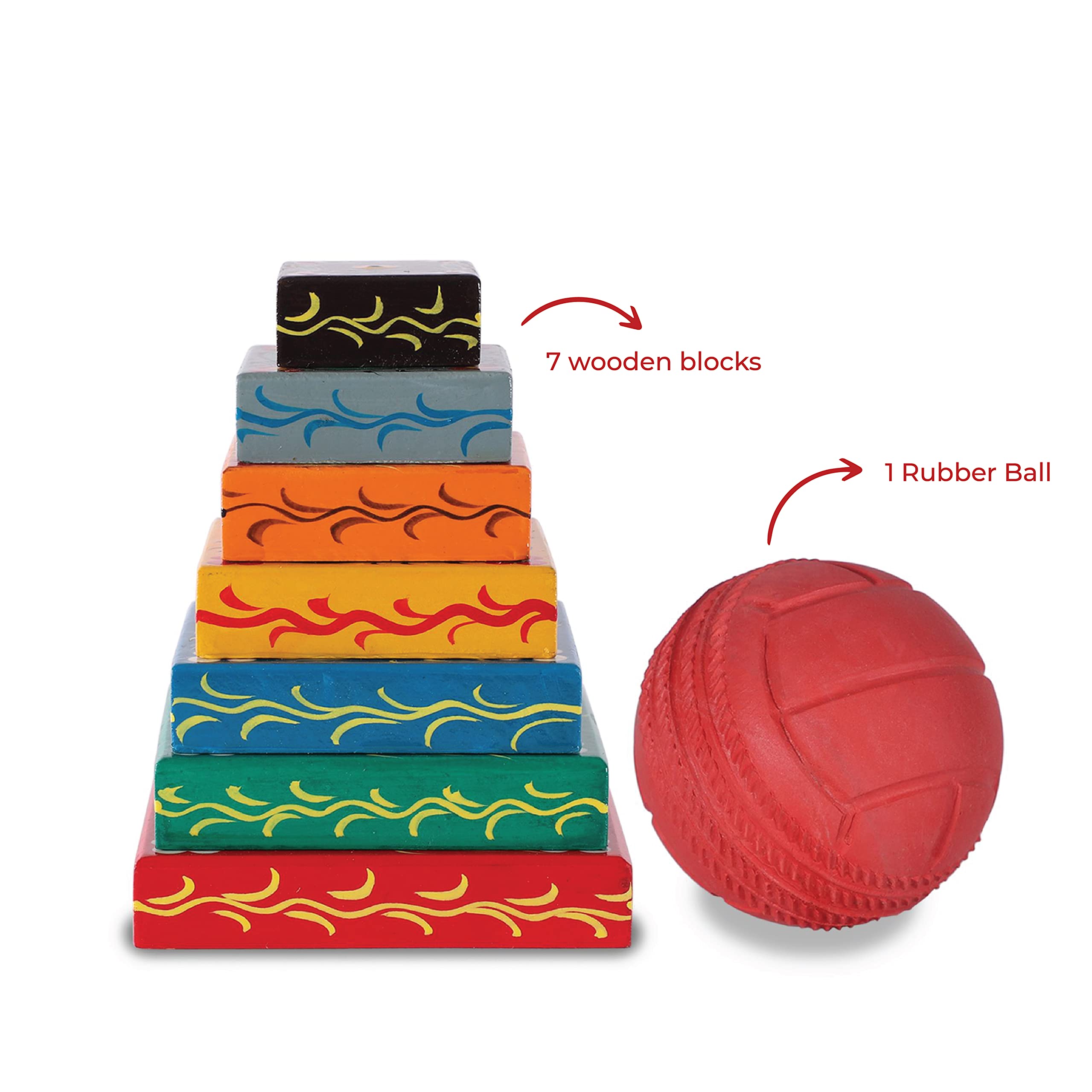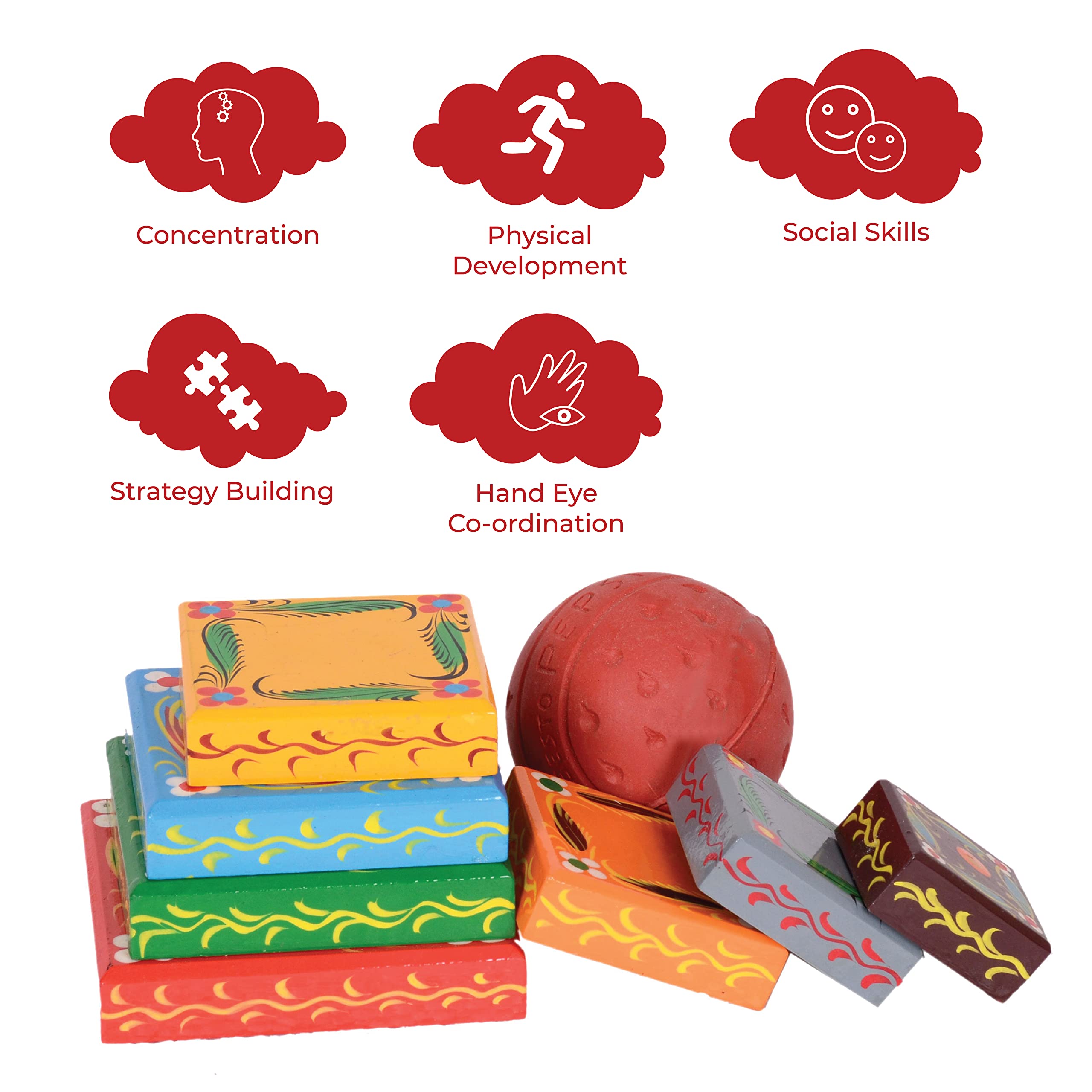 VARANASI WOODEN TOYS Lagori Pitthu Game | Handpainted Seven Stones with a Ball | for 8 Years & Up | Multicolor | Traditional Indian Sitoliya | Classical & Nostalgic | Outdoor Games | for Kids & Family