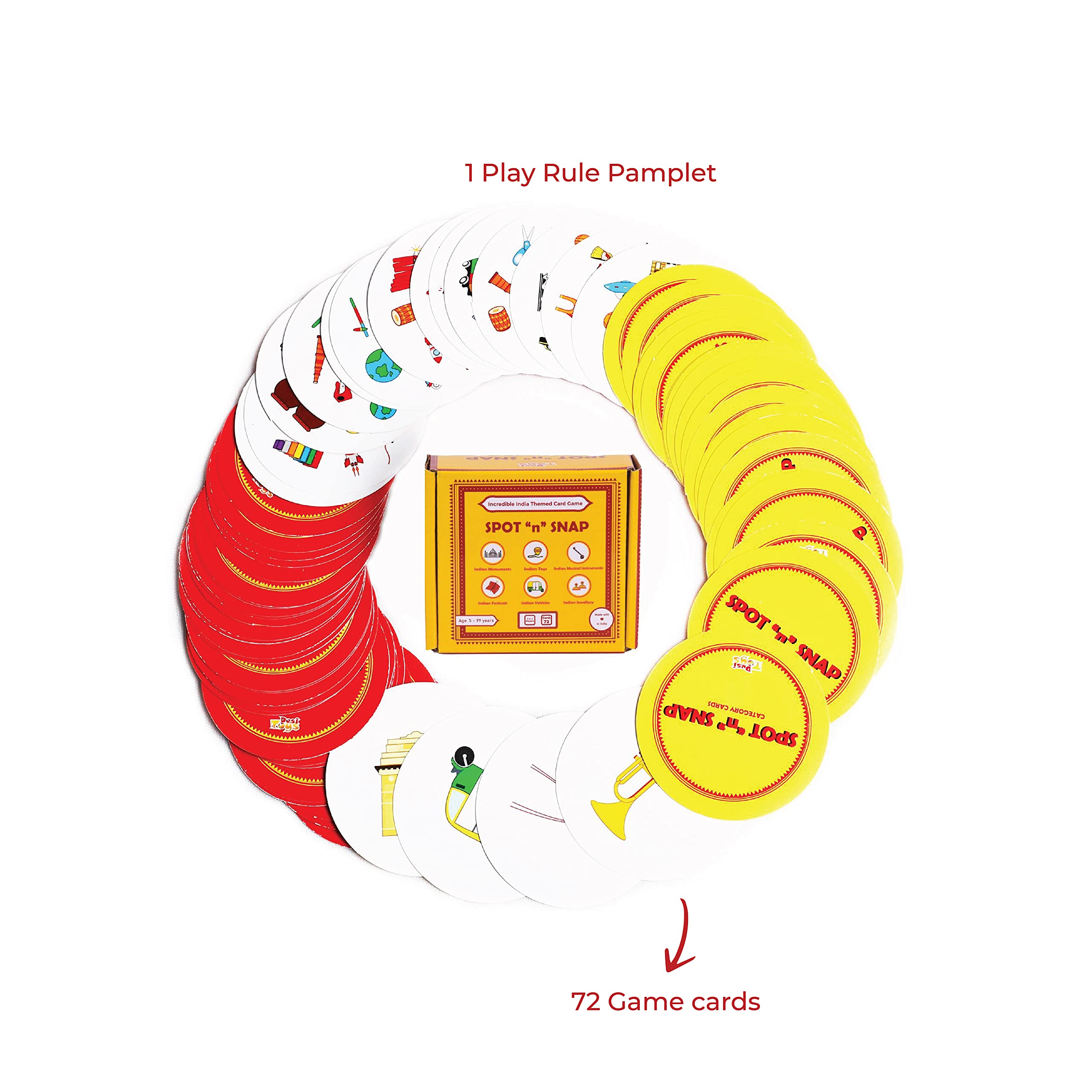 VARANASI WOODEN TOYS Spot n Snap Card Game | Games for Kids & Adults | Set of 48 Cards | India Themed | Matching Symbols | Educational & Classic Play | Family Game | Portable | Ideal Gift for Toddlers & Family